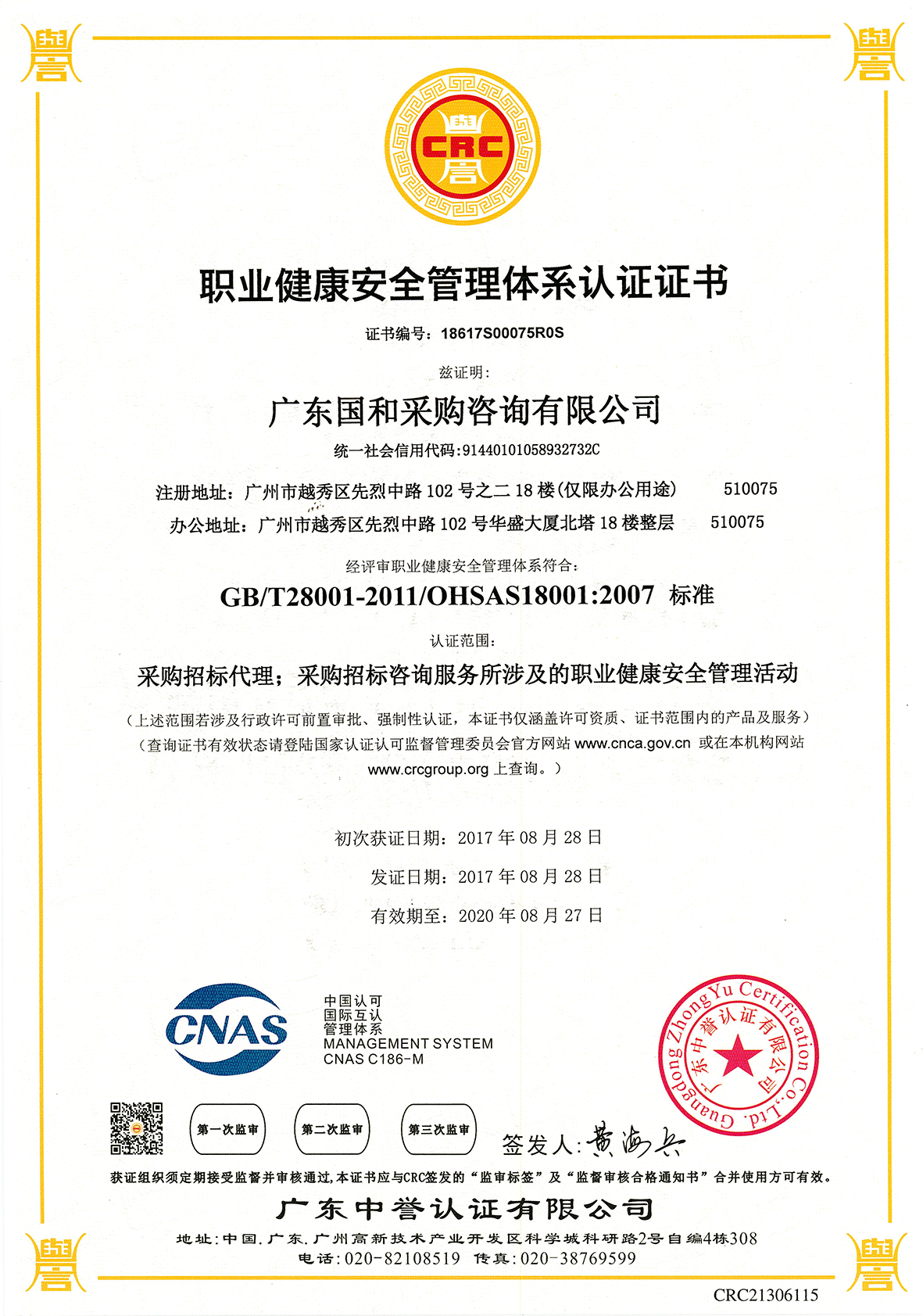 職業(yè)健康安全管理體系認(rèn)證證書(shū)