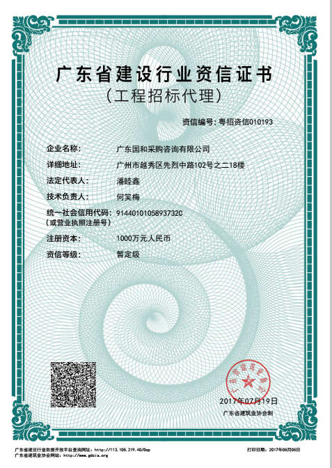 廣東省建設(shè)行業(yè)資信證書(工程招標(biāo)代理)