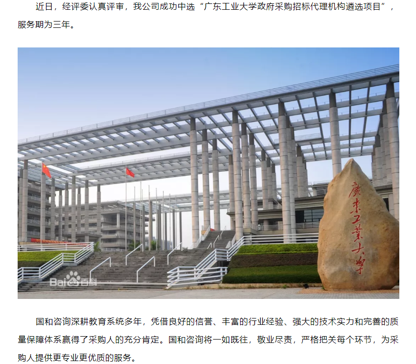 我公司成功中選“廣東工業(yè)大學(xué)政府采購招標代理機構(gòu)遴選項目”